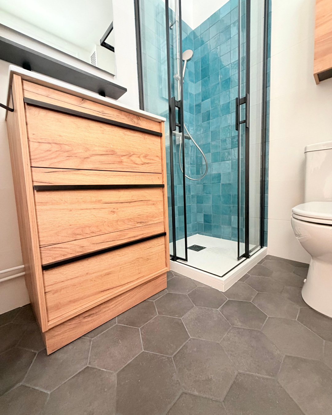 - La pose d’un meuble 3 tiroirs Salgar – Gamme Attila – Teinte Chêne africain 60 cm